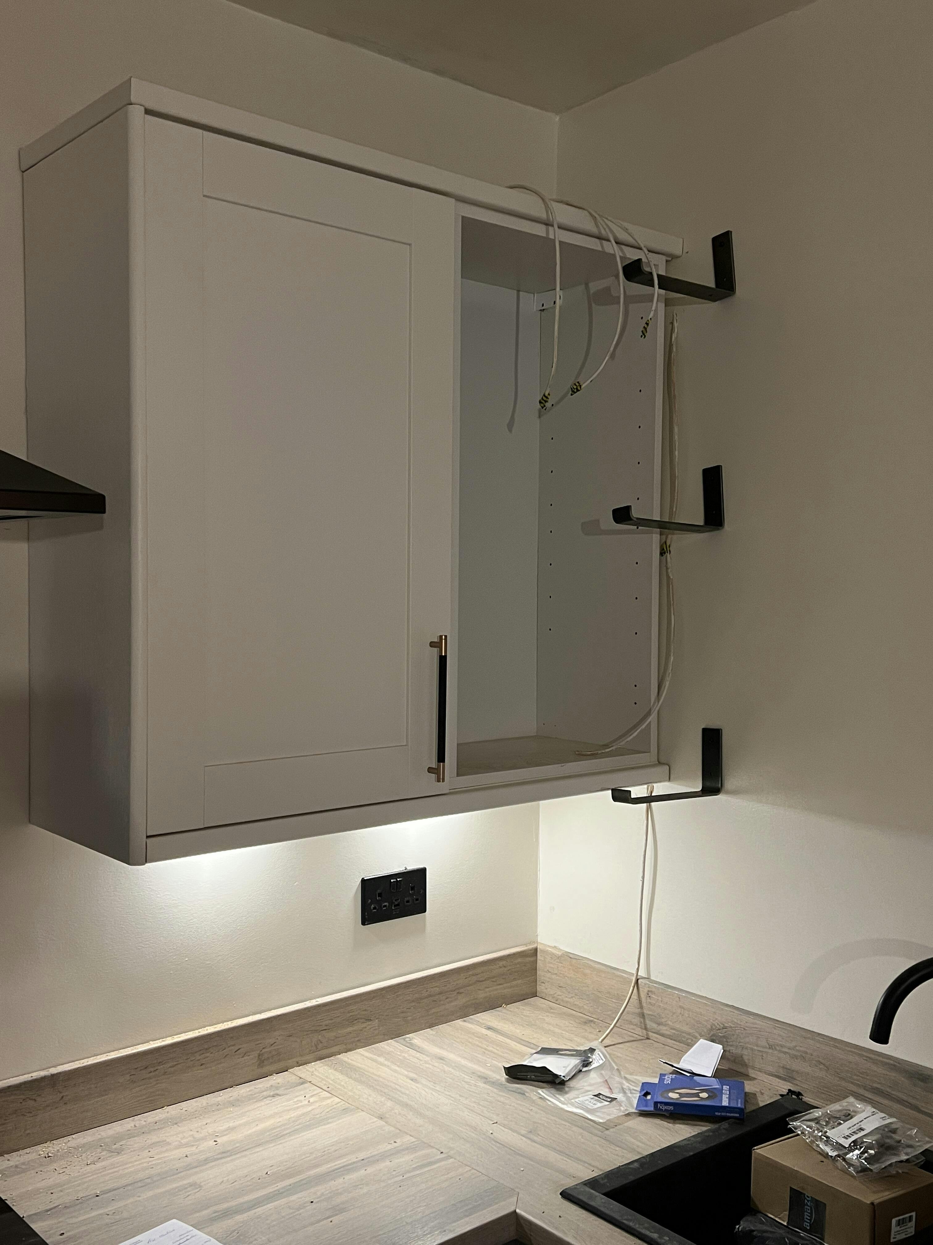 The most popular location to install a driver is above the wall units. This ensures the driver is out of sight but easy to access if required. Alternatively, the driver is slim so depending on the depth of your service gap, you can install the driver behind your carcasses.