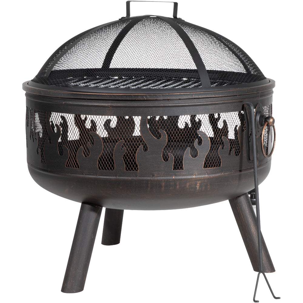 Round Fire Pit Wood Burner & BBQ Grill - Party Dining Garden Heater & Mesh